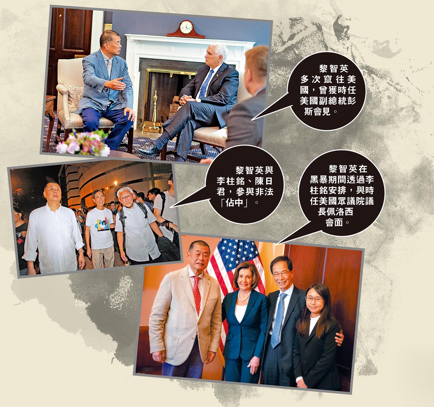 2019年黑暴爆發,黎智英與西方勢力的勾結也達到頂峰。他多次跑到美國,獲得時任美國副總統彭斯、國務卿蓬佩奧及多位共和黨參議員寵幸會見,亦曾透過李柱銘安排與時任眾議院議長佩洛西會面。彼時的動盪香港,是美西方眼裏的「美麗的風景線」,黎智英徹底撕下了面具,公然宣稱「美國正在支持着我們」、「香港是在為美國而戰」。