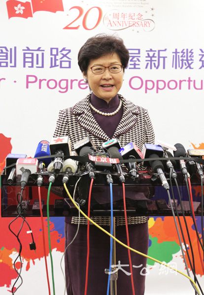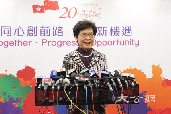 林鄭續說,未來五年對於香港既有挑戰亦有機遇,如何把握好機遇讓香港經濟再上台階,是下屆特區政府集中要做好的一個重要方面。林鄭非常感激中央對她的信任,並希望憑藉這份信任,以及中央對香港的關愛,同時利用「一國兩制」及背靠祖國的優勢,將香港發展的更好。