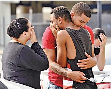 圖:遇難者的家屬和朋友在奧蘭多警局門口相擁痛哭/路透社