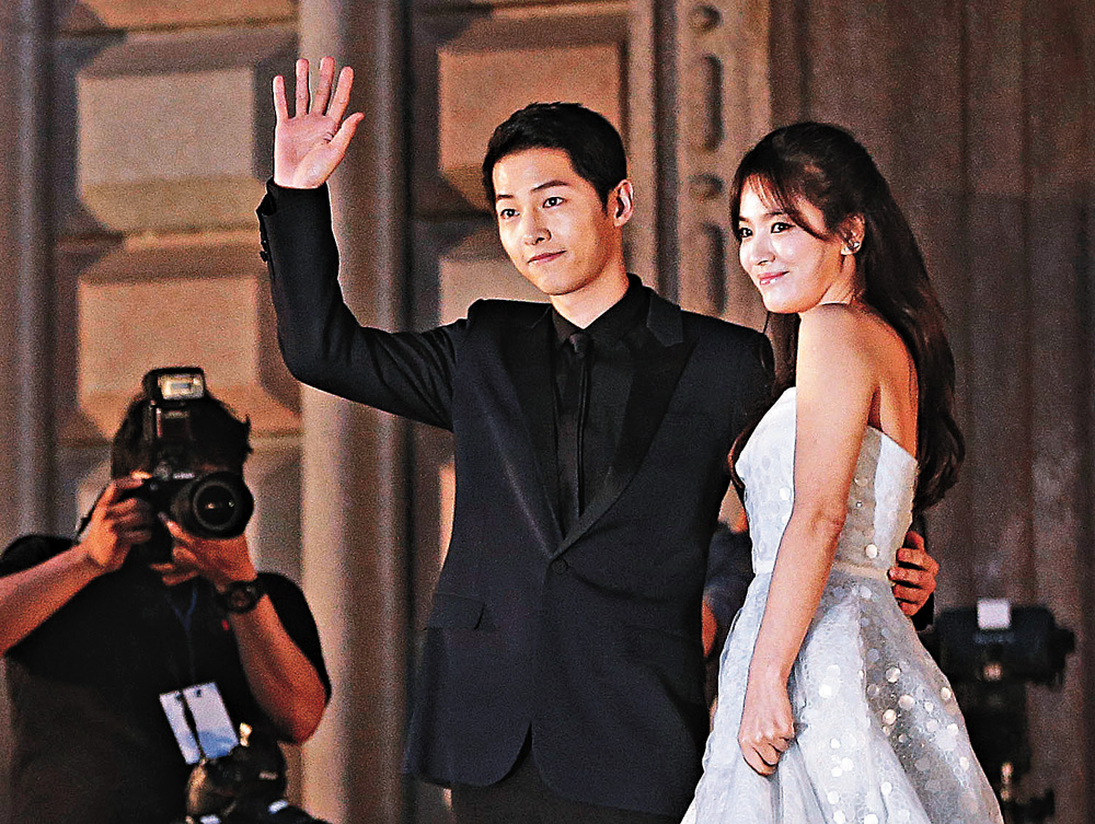 圖:《太陽的後裔》主演宋仲基(左)與宋慧喬 美聯社