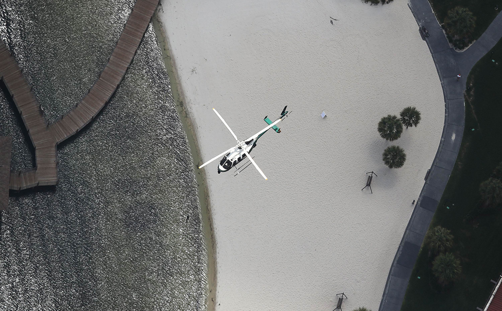 圖:一架直升機15日在事發水域附近搜索男童\法新社