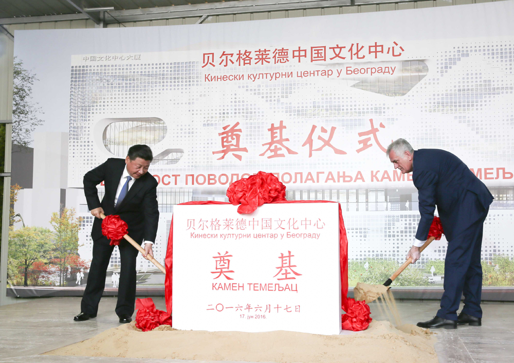 正在訪問塞爾維亞的國家主席習近平,當地時間17日與塞爾維亞總統尼科利奇共同出席中國文化中心奠基儀式,兩國元首為奠基石培土。中國文化中心會建在中國駐南聯盟被炸使館舊址上,亦將成為西巴爾幹地區首家中國文化中心。貝爾格萊德市市長宣布,將中國文化中心外的道路命名為「孔子大街」、廣場命名為「中塞友誼廣場」。