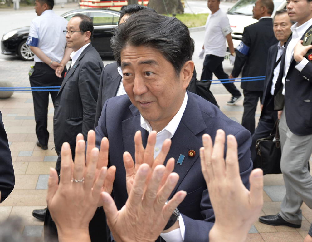 圖:日本首相安倍晉三22日在福島進行造勢活動\美聯社