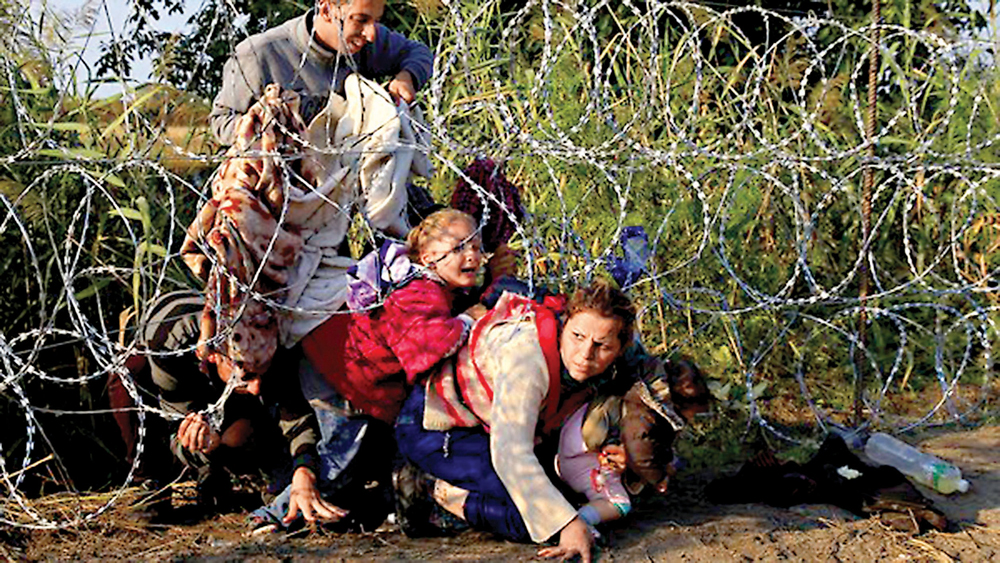 圖:敘利亞難民穿過匈牙利邊境的鐵絲網/路透社