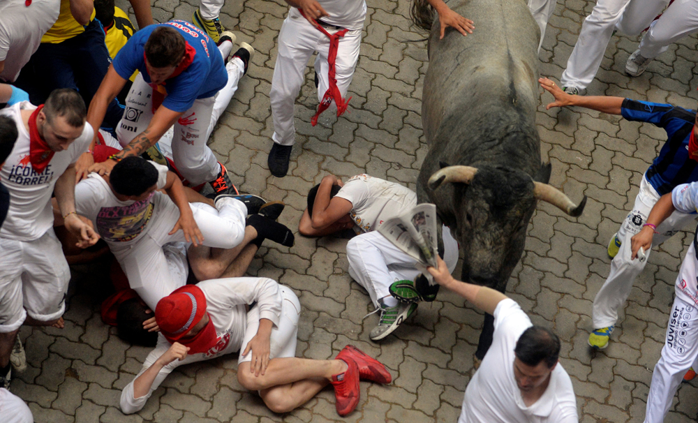 此外,在西班牙潘普洛納城舉行的聖費爾明奔牛節,上周日進入第四天。有2人在當天的活動中頸、胸部遭牛角刺傷,傷勢嚴重。另有3人受頭部創傷。