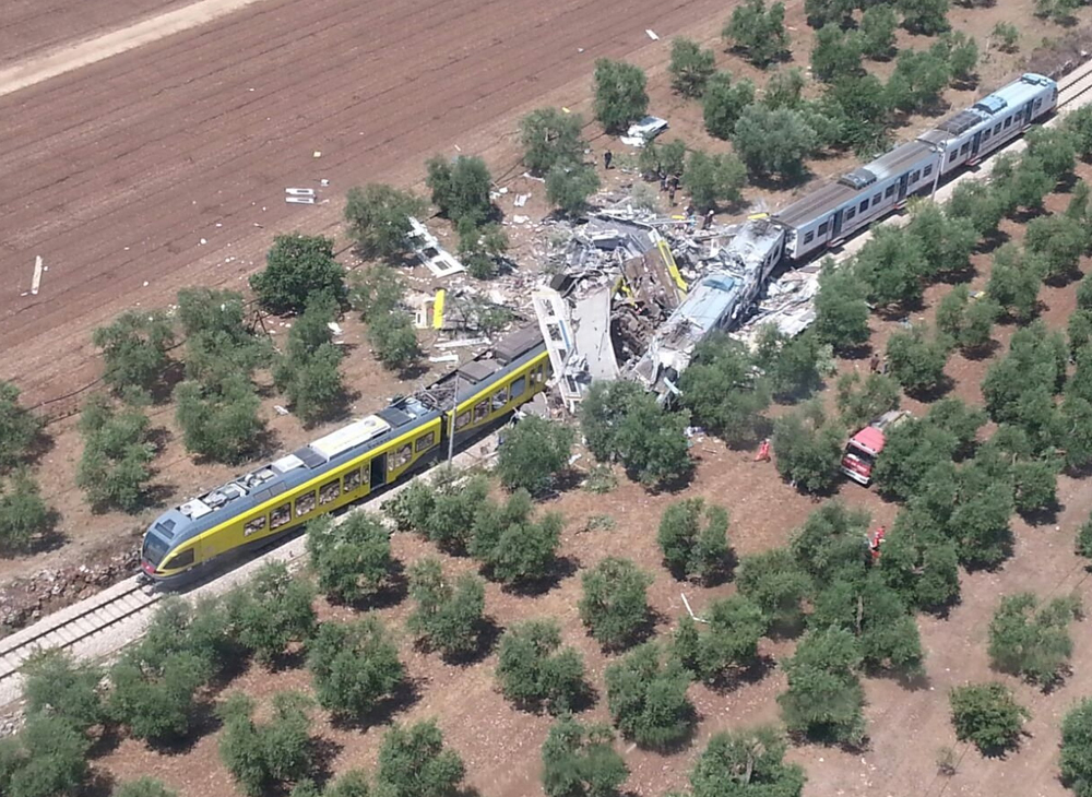 【大公報訊】綜合路透社、法新社、英國廣播公司報道:意大利南部普利亞大區12日有兩輛火車發生嚴重相撞事故,造成至少20人遇難,另有35人受傷,其中18人重傷。據救援部門消息,目前清理現場的工作仍在持續,死亡人數可能會繼續上升。當地官員已呼籲民眾前往附近醫院捐血。