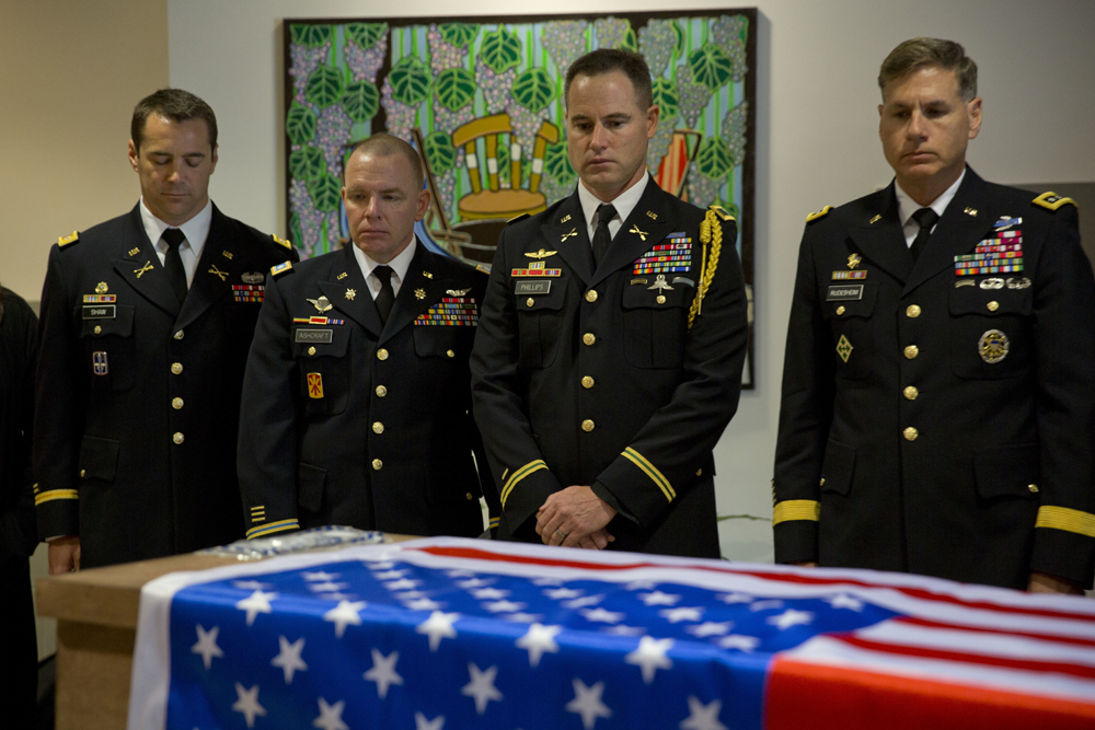 圖:今年3月美國軍方官員向弗爾斯的靈柩致意/資料圖片