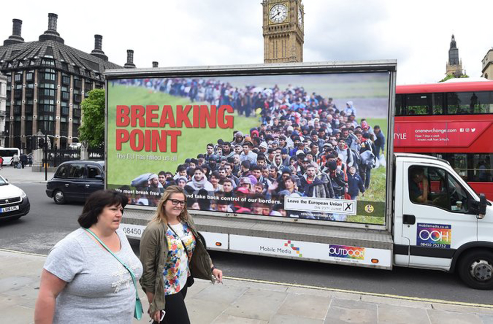 圖:推「脫歐」的英國政客曾用移民危機作宣傳/網上圖片