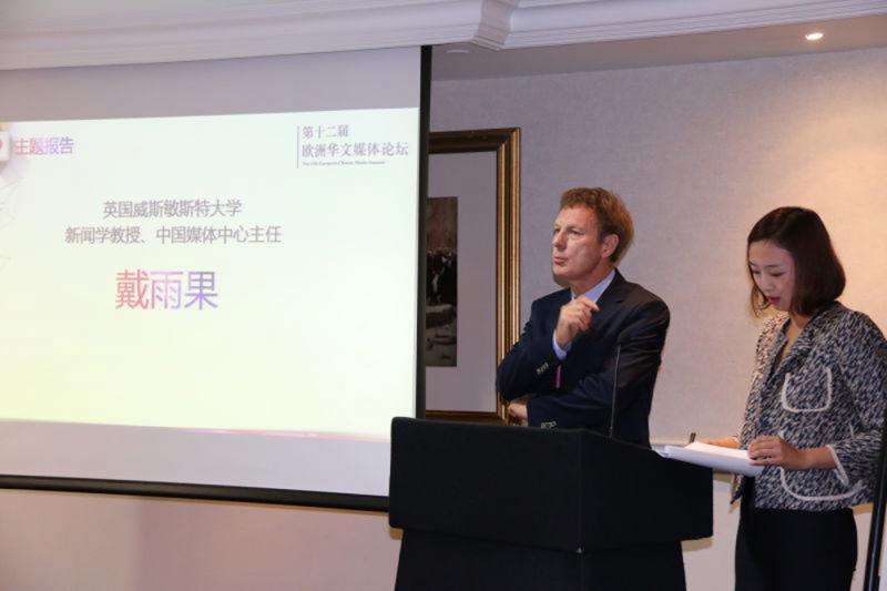 參加當天大會的有來自英國、法國、德國、瑞士等歐洲多國主流華文媒體代表,有「中國通」之稱的英國西敏大學中國傳媒中心主任戴雨果(Hugo de Burgh)特邀做了主題發言,他曾出版了向西方人介紹中國的《中國是敵是友?》一書,也拍攝了幫助中國人認識西方的紀錄片《你所不了解的西方故事》,他還參與培訓了數十位中國政府新聞發言人。