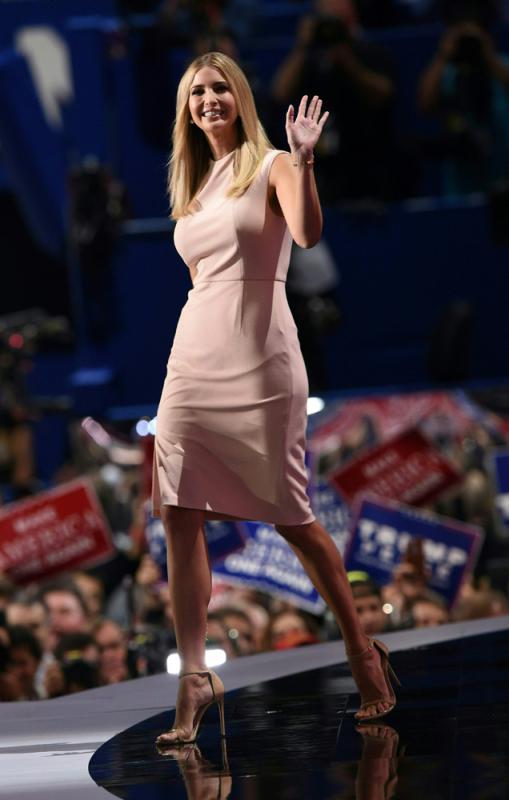 報道指,伊萬卡22日晚在共和黨全代會以一身粉紅色緊身洋裝亮相,上台發言讚揚父親,泰然自若。這套服裝來自她的同名品牌,而她設法確保消費者知道衣服開賣後的購買方式和地點。