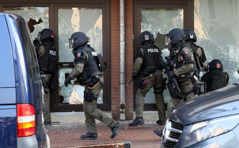 圖:德國特警部隊27日進入齊恩多夫鎮發生爆炸的移民接待中心 美聯社