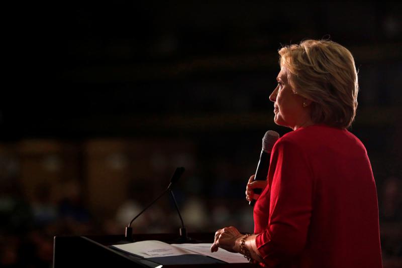 圖:美國民主黨總統候選人希拉里29日在賓夕法尼亞州發表演說 路透社