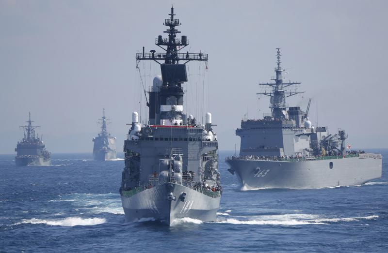 圖:日本護衛艦「藏馬號」在東京灣以南航行\美聯社