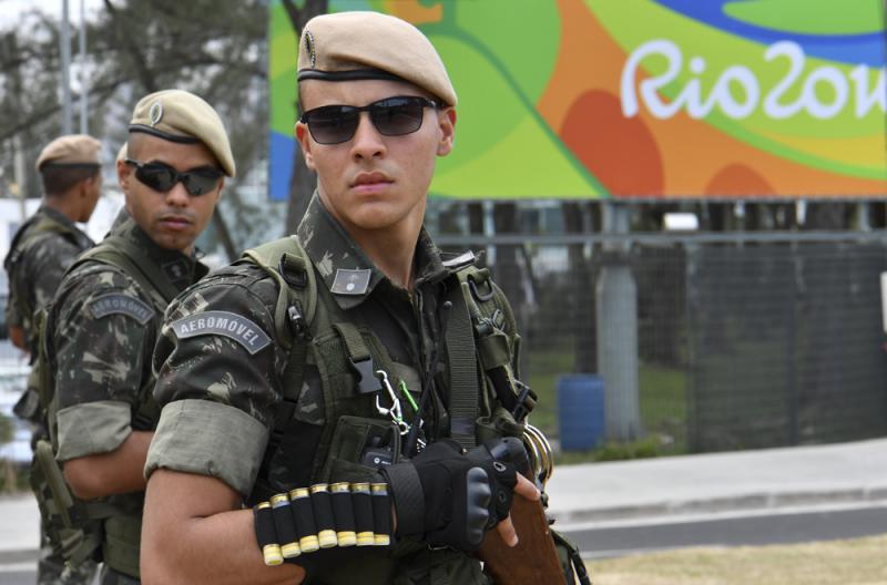 圖:巴西士兵3日在里約中心展覽館巡邏\法新社