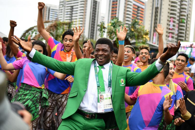 圖:尼日利亞摔跤運動員3日在奧運村表演\法新社
