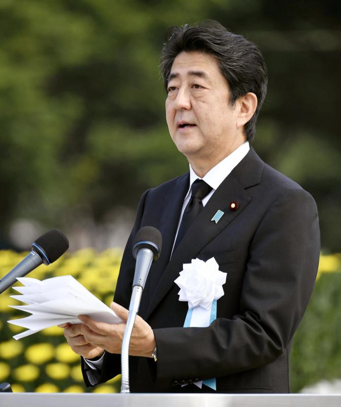 圖:日本首相安倍晉三6日出席廣島核爆紀念儀式\美聯社