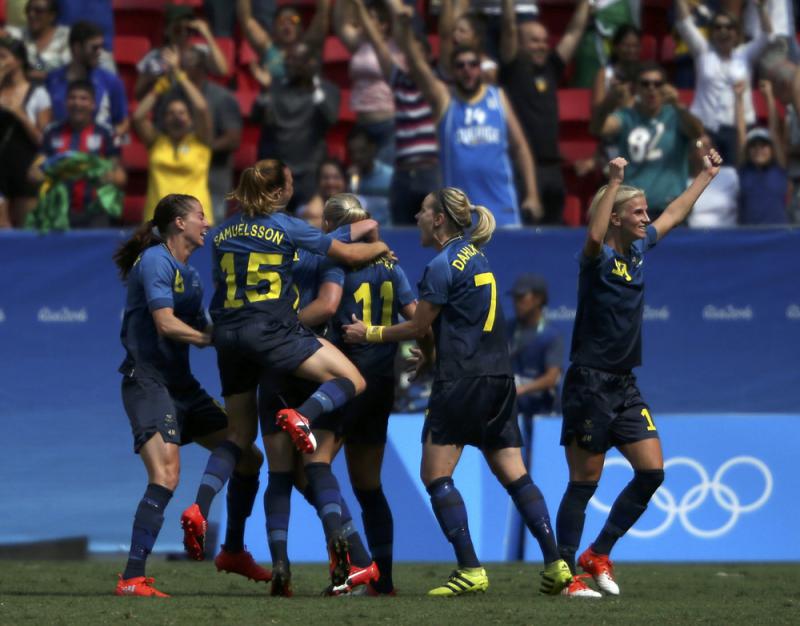 美國與瑞典女足在90分鐘戰成1:1,加時賽雙方都沒有進球,最終比賽被拖入點球大戰。最終瑞典隊點球4:3取勝,以總比分5:4淘汰美國女足晉級下一輪。