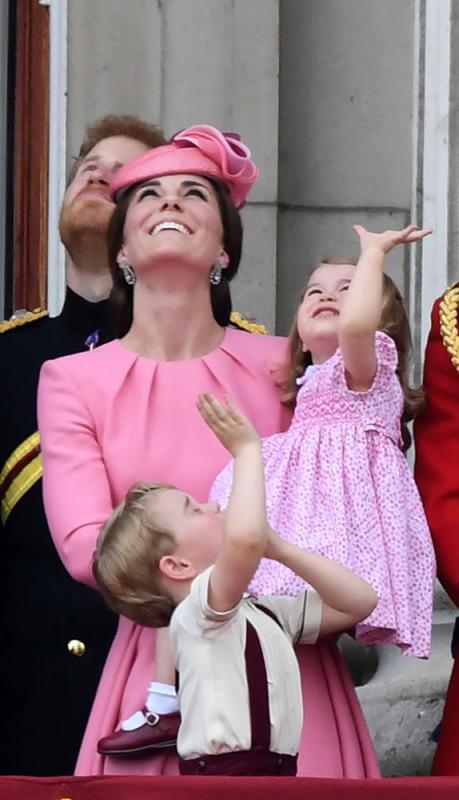 圖:喬治王子和夏洛特公主興奮觀看飛行表演 法新社