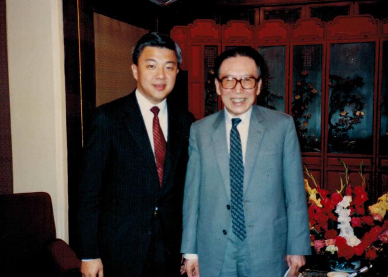 圖:滕紹駿(左)1992年在北京與時任副總理吳學謙合影 受訪者提供