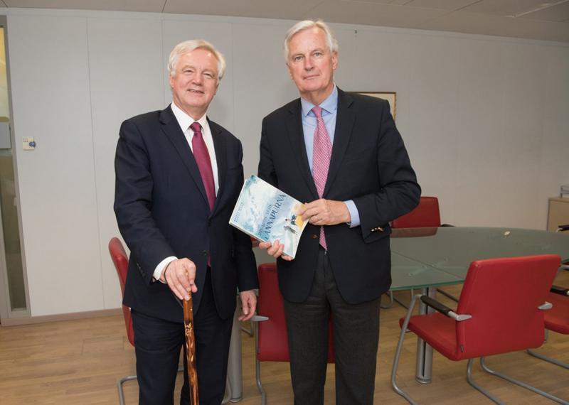 【大公報訊】綜合英國《每日電訊報》、路透社報道:英國與歐盟周一展開脫歐談判之前,英國脫歐事務大臣戴德偉和歐盟首席談判代表巴尼耶開會前先禮後兵,不約而同送上登山用品給對方。