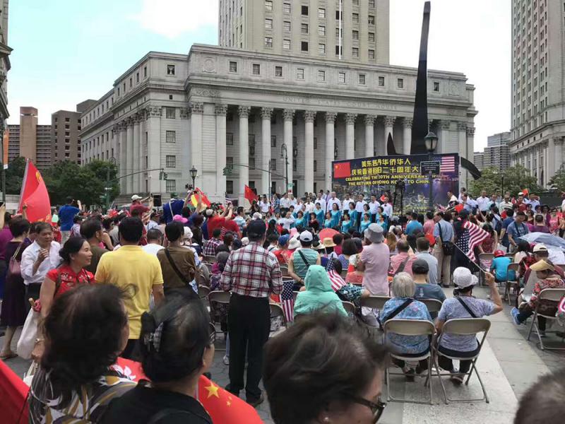 中國駐紐約總領事章啟月大使在致辭中表示,實踐證明,「一國兩制」政策取得了巨大的成功,從20年前的香港回歸,到今天的回歸二十周年慶典,美東地區的華人都關注關心着香港。「20年前,他們就在這舉辦了非常盛大的集會,今天又有萬人的集會,我想大家都非常開心。