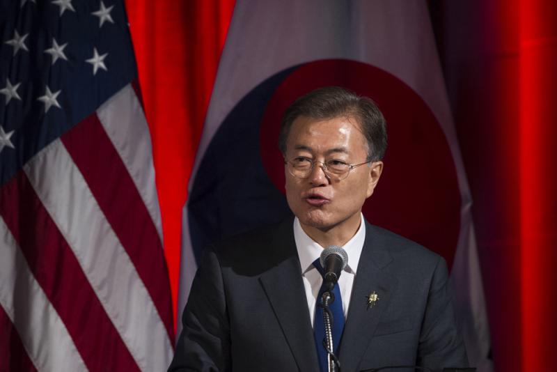 圖:文在寅出席由美韓兩國商會舉辦的圓桌會議 美聯社