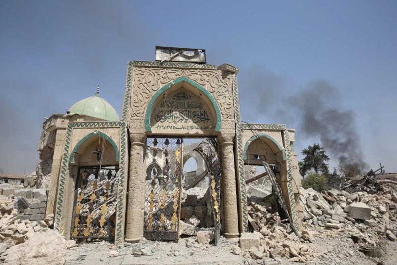 解放摩蘇爾的戰鬥於2016年10月打響。6月18日,伊拉克政府軍從多個方向攻入摩蘇爾老城區,摩蘇爾戰事已進入最後階段。隨着伊軍方在摩蘇爾老城不斷推進,6月21日,大勢已去的ISIS成員炸毀努里清真寺及著名的宣禮塔。