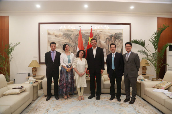 中國駐印度大使羅照輝(右三)接受印度通訊社專訪 (中國駐印度大使館網站)