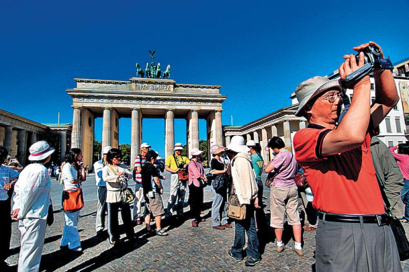 圖:在德國柏林勃蘭登堡門遊覽的中國遊客/網上圖片