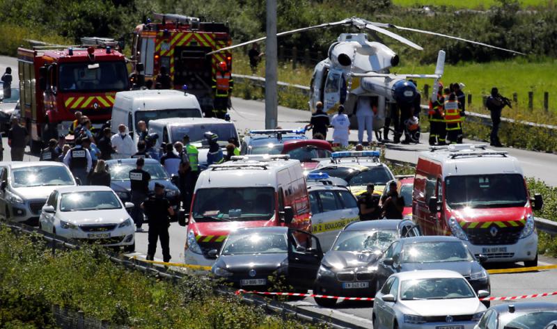 圖:巴黎警方9日在高速公路包圍疑犯汽車\路透社