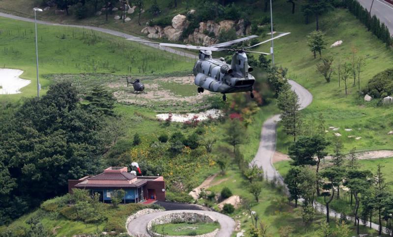 圖:韓官員12日乘直升機抵達「薩德」部署地/ 網上圖片