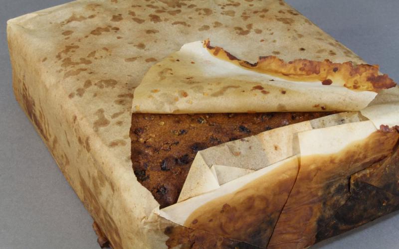 根據紀錄,該蛋糕可能是英國探險家羅伯特.斯科特在1910年到1913年進行特拉諾瓦考察時帶領的團隊帶去的。當時他和4位隊員希望能先於全球登上南極中心點。斯科特一行於1912年1月17日成功登上南極點,卻發現另一支隊伍,來自挪威的阿蒙森探險隊已於34天前抵達。不幸的是,斯科特隊伍在回程途中全數喪生。