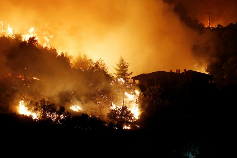 圖:希臘卡拉莫斯13日爆發嚴重山火/路透社