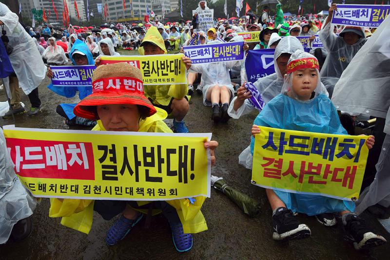 活動組織方「8.15泛國民和平行動」估計,當天約1萬人參加了反「薩德」集會。警方則估計集會人數為6000人。民眾身披雨衣在美國大使館附近舉行了一個多小時的示威遊行,高喊「反對『薩德』」、「反對韓美軍演」、要求美國從朝鮮半島撤離等口號。集會內容不僅反對「薩德」,同時也反美。