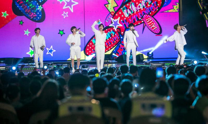 圖:韓國流行樂團12日在和平演唱會上表演 網上圖片