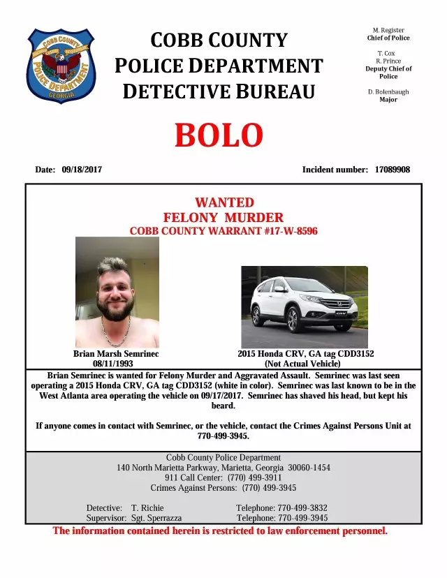 大公文匯全媒體綜合報道:9月18日,一名中國年輕女性被發現在美國佐治亞州科伯郡一處公寓內遇害身亡。當地時間9月25日下午,嫌犯森里內克(Brian Marsh Semrinec)被警方逮捕。