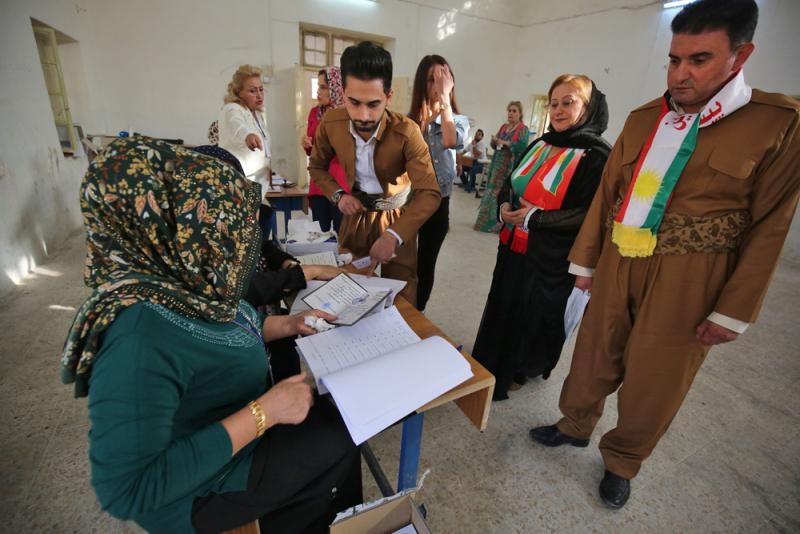 圖:伊拉克庫爾德自治區的選民25日在投票法新社