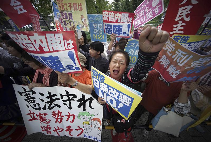 圖:日本民眾28日在東京的國會大樓外示威 美聯社