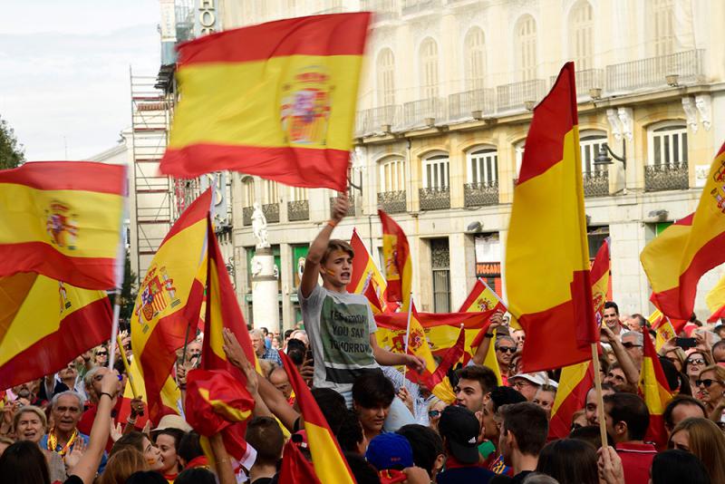 投票前一天,數以千計的民眾也在西班牙各大城市發起遊行。巴塞羅那落雨天氣沒有影響當地民眾的熱情,人們揮舞西班牙國旗,不時高唱歌詞為「我是西班牙人」的歌曲。