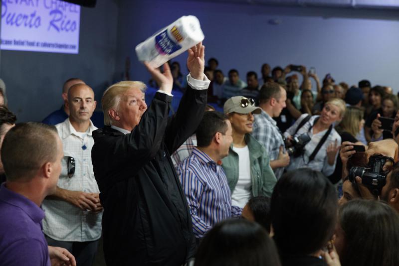 圖:美國總統特朗普3日到訪波多黎各探望災民時向人群投廁紙,此後被斥行為不當/美聯社
