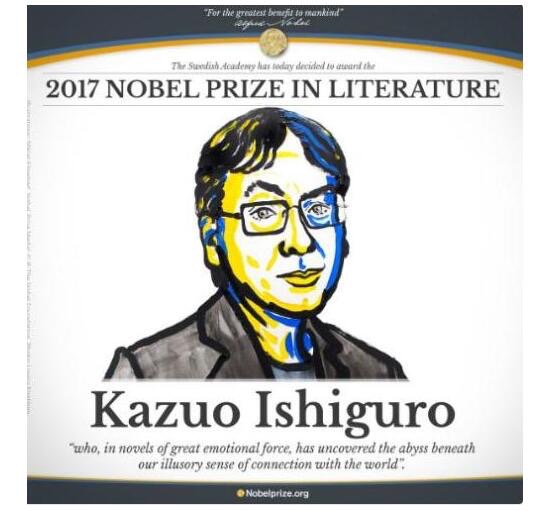 石黑一雄1954年出生於日本長崎,1960年因父親工作關係,全家移民英國。諾貝爾官方表示,石黑一雄在2005年作品《別讓我走》(Never Let Me Go)一書中,首度使用科幻素材、2015年作品《被遺忘的巨人》(The Buried Giant),探討記憶與遺忘、過往與現今、現實與虛幻。
