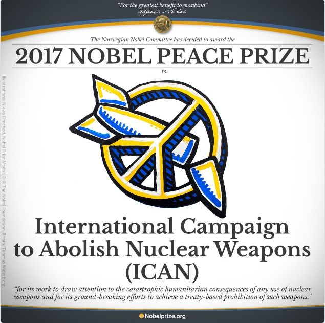 大公文匯全媒體綜合報道:諾貝爾和平獎今日(6日)揭盅,非政府組織「國際廢除核武運動」(International Campaign to Abolish Nuclear Weapons,簡稱ICAN)獲得獎項。