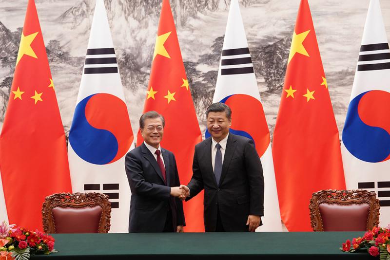 圖:中國國家主席習近平上月在北京同來訪的韓國總統文在寅舉行會談/中新社