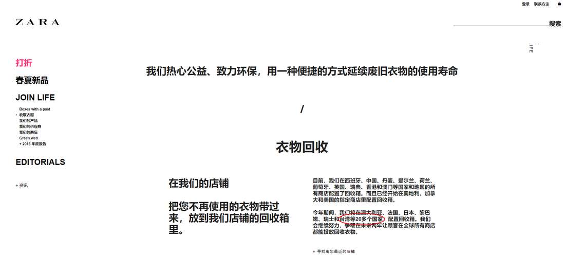 ZARA中文網頁稱台灣為「國家」(網絡圖片)