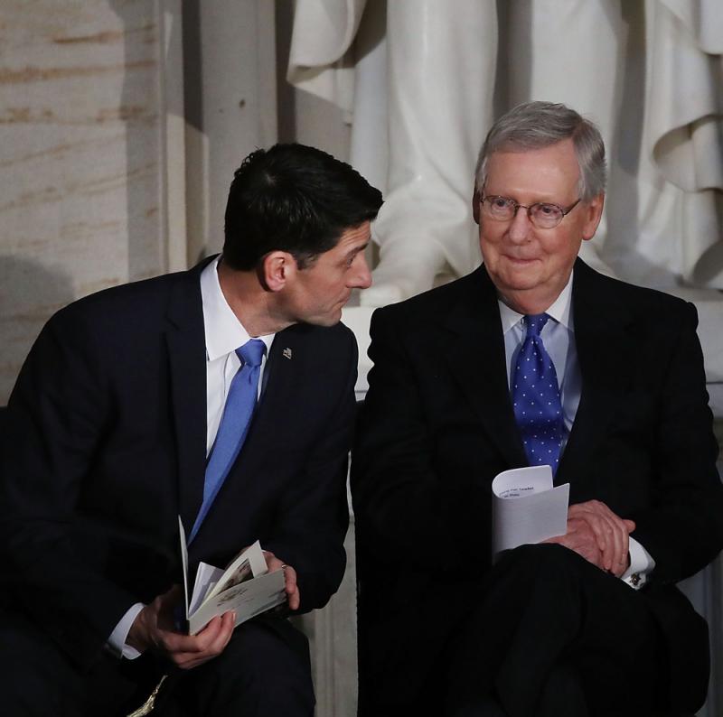 圖:眾議院議長瑞安(左)及參議院多數黨領袖麥康奈爾(右)推臨時法案/法新社