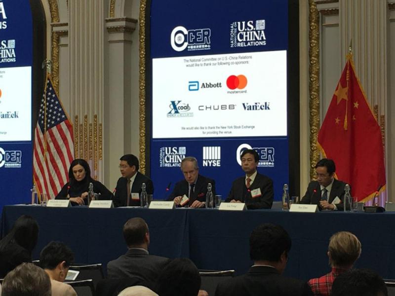 美中關係全國委員會和北京大學中國經濟研究中心合辦的「2018中國經濟預測」論壇9日上午在紐約證券交易所舉行 黃曉敏攝