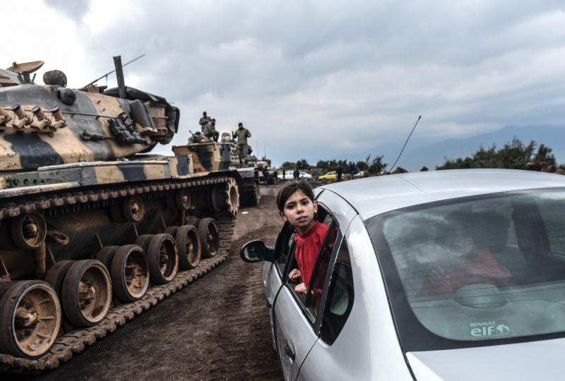 圖:一名庫爾德女孩望向迫近敘邊境的土耳其軍隊 法新社