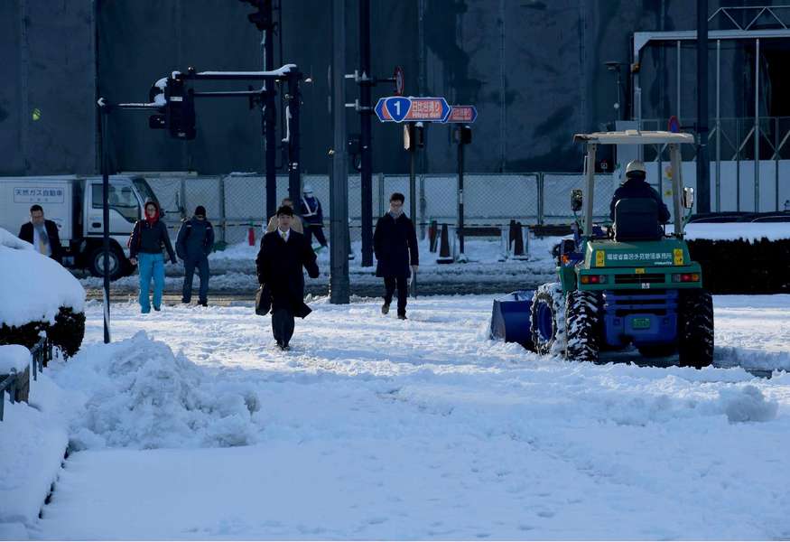 日本關東地區昨午(22日)降下大雪(彭博、路透、法新社)