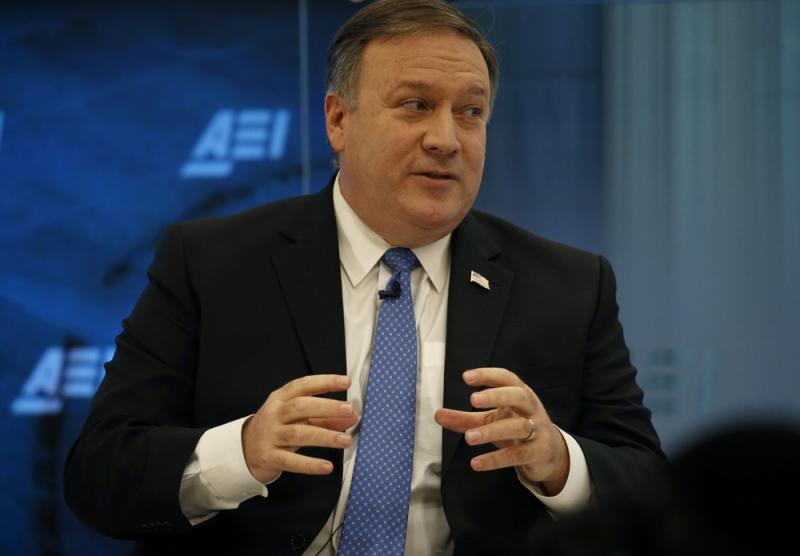 圖:美國中情局局長蓬佩奧周二在華盛頓美國企業研究所發表演說\路透社