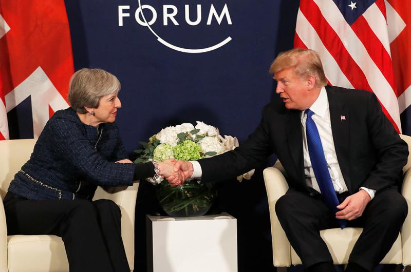 去年年底,文翠珊批評特朗普在社交網站推特上轉發英國極右組織的暴力影片,特朗普則回敬說,文翠珊不要多管閒事。文翠珊是特朗普上台後首個到訪白宮的外國領袖,但特朗普訪英的行程卻遲遲無法敲定,前不久,特朗普在推特上宣布取消到訪倫敦為美國駐英新使館剪綵。當天被問及是否將會到英國進行國事訪問時,特朗普說,「我們再做討論。」